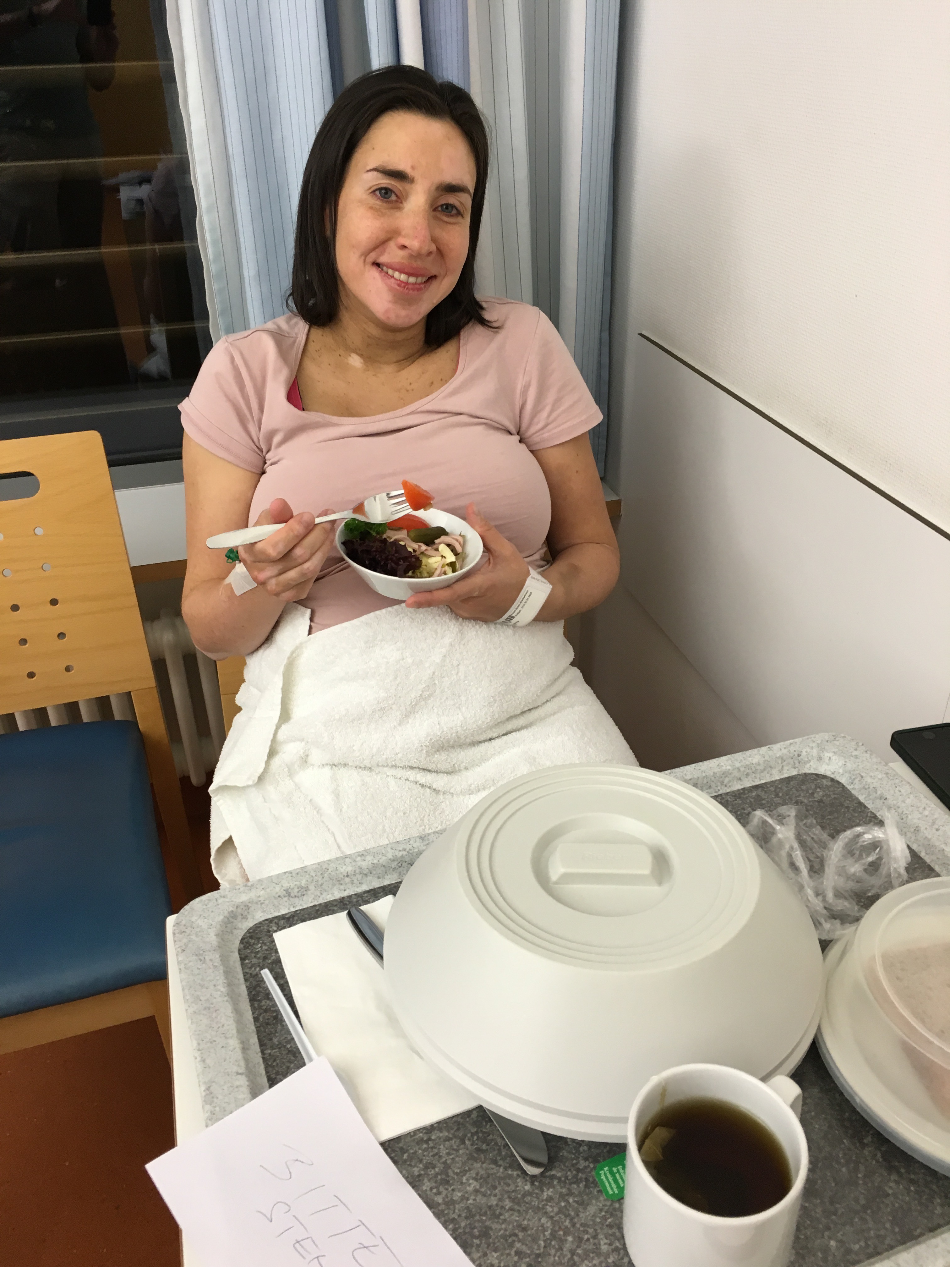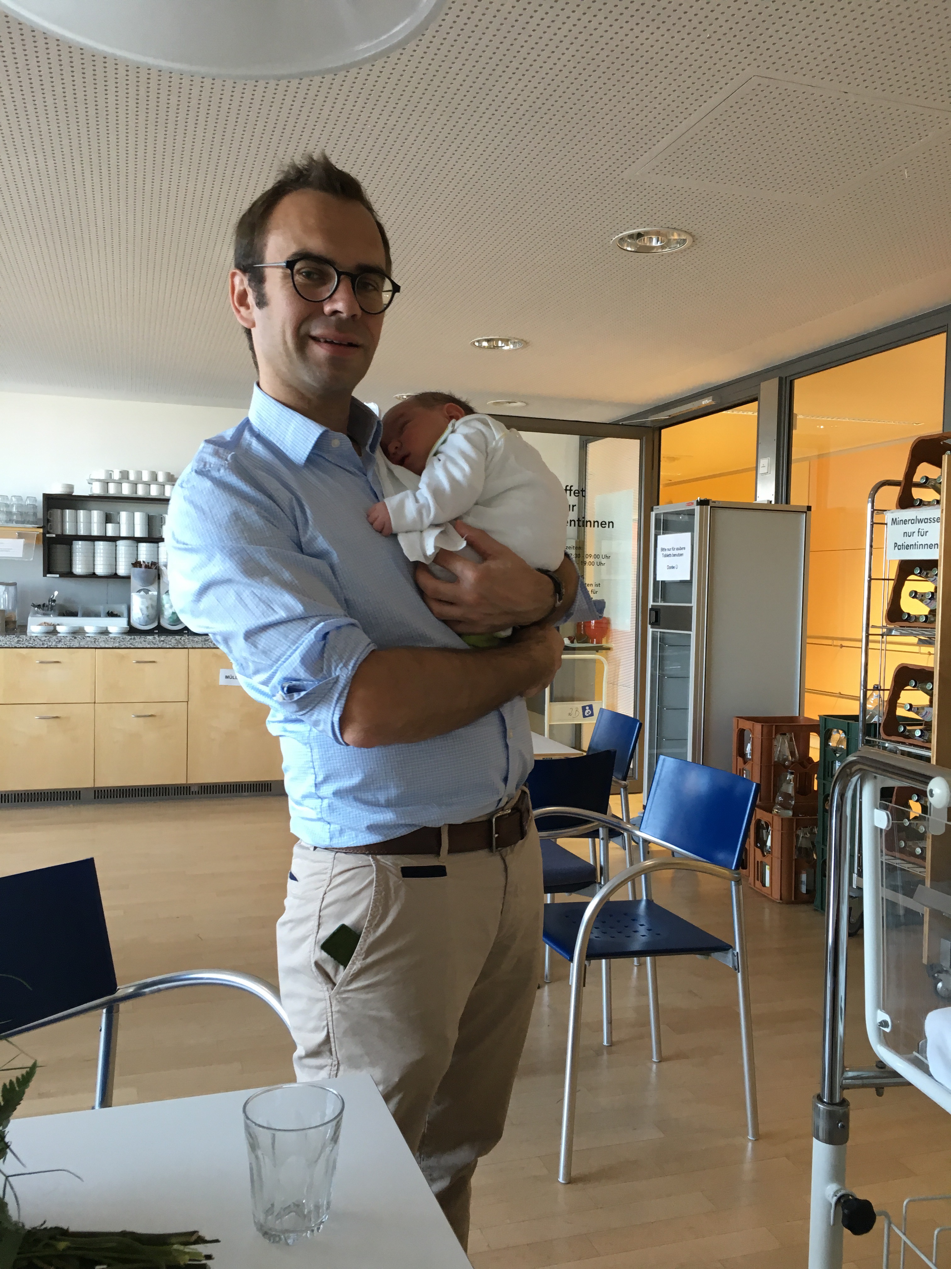 Nach der Geburt erst mal nen ordentlichen Wurstsalat für daphi und heut morgen auch gut gefrühstückt. Jochen zuhause Blumen besorgt, Grill aus der Sonne geparkt und wieder ins Krankenhaus. Jetzt geht’s um 11.00 zum nächsten Blutzuckertest – was muss er auch über 4kg haben – sind doch nur Muskeln 😉